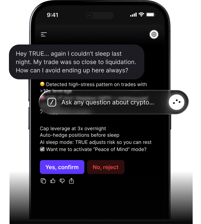 TRUE Trading (“TRUE”, “we”, “our”, or “the Protocol”) is a decentralized software platform that enables non-custodial trading of perpetual futures and related derivative products on the Solana blockchain. Access to or interaction with TRUE constitutes acceptance of the following terms and disclosures. Please read them carefully.